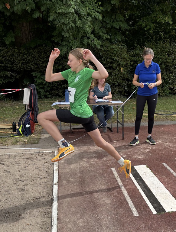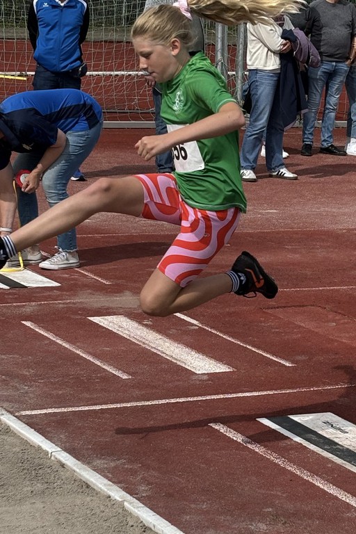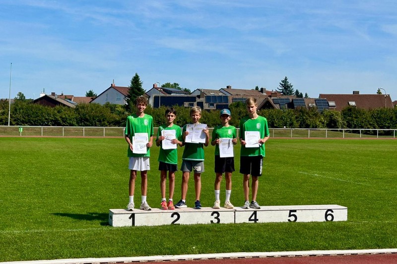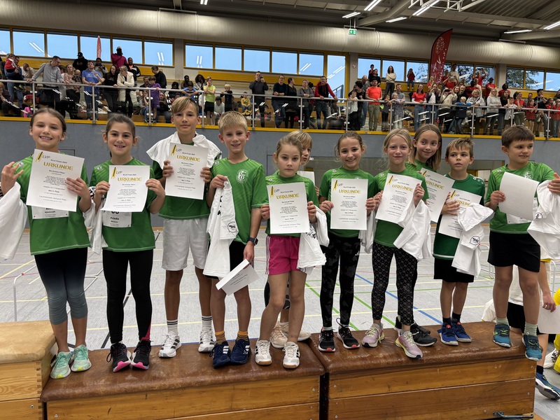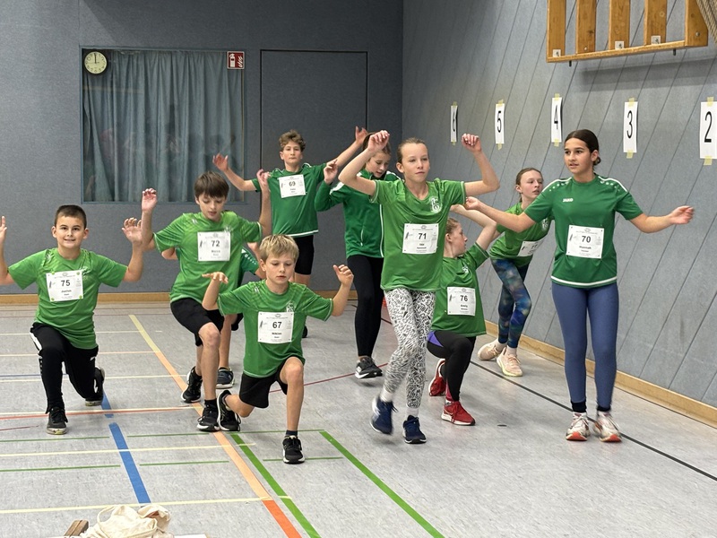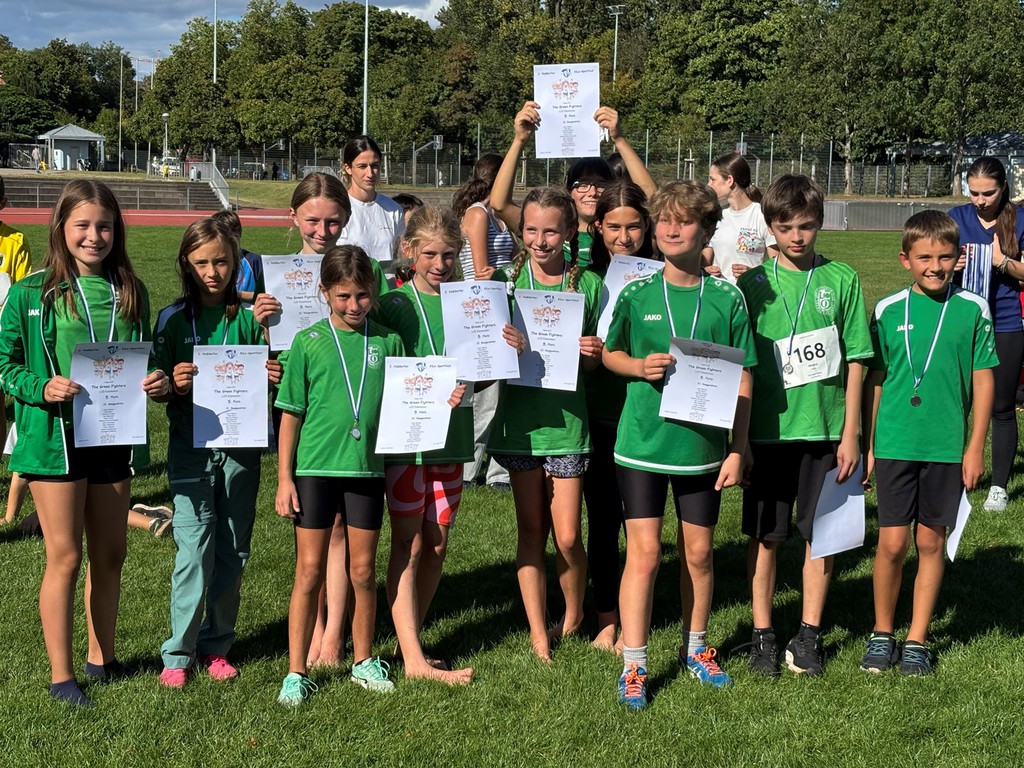 The Green Fighters der U12, die als vorletztes Team ins Finale einzog, waren ebenfalls hoch-motiviert das gute Ergebnis aus Frankenthal (2. Platz) zu bestätigen. Auftakt war für Felix Borm, Henri Becker, Justus Supe, Hannah Förster, Ida Kjöstvedt, Marco Rossi, Niklas Auer, Marlene Schwarztrauber, Jack Stritzinger, Emily Weisser und Ariane Wiedemann Medizinball-Stoßen, was durch konstant gute Weiten mit dem 3. Platz belohnt wurde. Auch im 35m Hindernissprint konnte die Motivation in ein gutes Ergebnis überführt werden (Platz 3).