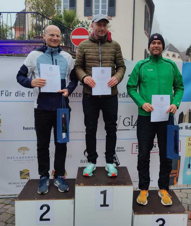 Der Gewinner des Rennens, Leander Fink (TV Alzey), der auch schon in der Vorwoche am Potzberg gewonnen hatte, setzte sich schon frühzeitig von seinen Verfolgern ab und erreichte nach 30:54 Minuten mit deutlichem Vorsprung das Ziel. Als nächste Läufer folgten Jonas Lehmann (TuS Heltersberg) und Holger Körner (Karlsruher Lemminge). Zufrieden konnte Martin Wallebohr sein, der in diesem schnellen Rennen als Zwanzigster des Gesamtfeldes ins Ziel kam und Vierter seiner Altersklasse M40 wurde. Zweitbester LCO-Läufer wurde Hendrik Kopp vor Patrik Döringer, Thomas Dünnebier, Peter Klein und Bennedikt Haab.