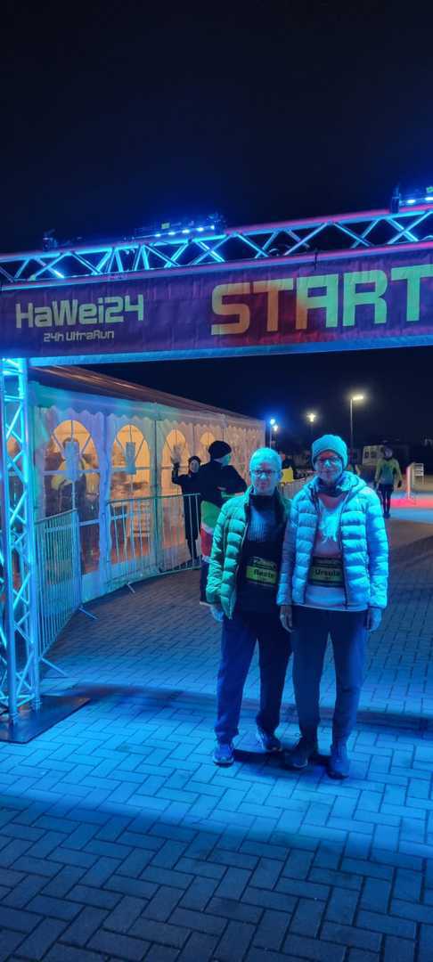 Die Laufgemeinschaft Weiher e. V. feierte ihr 10-jähriges Jubiläum in ungewöhnlicher Art. Sie veranstalteten einen 24-Stunden-Lauf, beginnend am Freitag, den 07.11., 18.00 Uhr, genau die Gründungszeit vor 10 Jahren, bis samstags, den 08.11., 18.00 Uhr. Gelaufen wurde in 1.296 m- Runden auf dem Gelände des Campingplatzes am Hardter See in Ubstadt- Weiher, amtlich vermessen. Die Laufstrecke war nachts komplett beleuchtet, wo Straßenlaternen fehlten gab es bunte Strahler und Lichterketten. Das Teilnehmerlimit von 350 Läufern war schnell erreicht; erlaubt war den Teilnehmern alles von laufen, joggen, walken bis hin zu spazieren. Man konnte jederzeit seinen Lauf unterbrechen und später wieder einsteigen. Gestartet wurde bei recht angenehmen 5 Grad, die sich in den frühen Morgenstunden auf 1 Grad absenkten und etwas Nebel und leichten Wind mitbrachten. Insgesamt haben 323 Leute teilgenommen, 216 Männer und 107 Frauen. Erste Frau nach 24 Stunden war Katrin Ochs vom LG Filder mit 204,768 km und erster Mann war Marius Seith vom LSG Karlsruhe mit 241,261 km. Beate Reeb und Ursula Hauck sind die ganze Nacht durch gewalkt bis zum Samstag um 12.00 Uhr. Im Rahmen des 24-Stunden-Lauf waren sie so 18 Stunden aktiv dabei. Beate legte in dieser Zeit 85,536 km zurück und erreichte von allen Teilnehmern Platz 133, in der Altersklasse W60 erzielte sie Platz 1. Ursula walkte 71,280 km und belegte Platz 163 insgesamt und wurde Zweite in der W60. Insgesamt war es eine sehr gelungene Veranstaltung. (Text: Ursula Hauck)