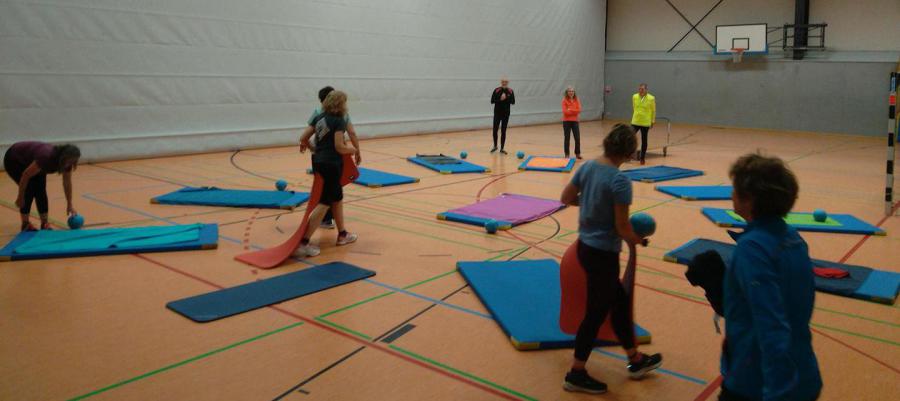 Gestartet wird mit einer spannenden Partie Hockey, gefolgt von Frisbee, Völkerball oder auch mal Mattenrutschen.